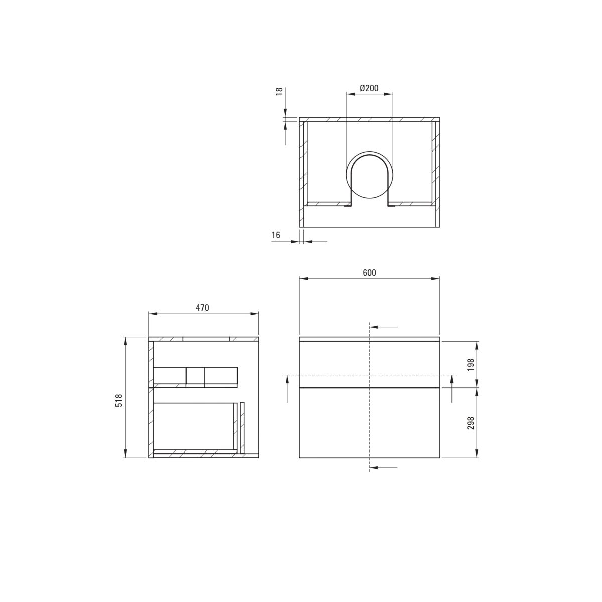 - Oberer Schubladenauszug mit Siphonöffnung: ja
