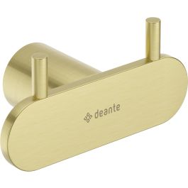 Doppelhaken aus der Round-Kollektion. Ein unverzichtbares Element für jedes moderne Badezimmer, das doppelten Platz zum Aufhängen von Handtüchern oder Bademänteln bietet. Die einfache Montage und die elegante Oberfläche in gebürstetem Gold machen ihn zu einer idealen Ergänzung für verschiedene Badezimmerausstattungen.