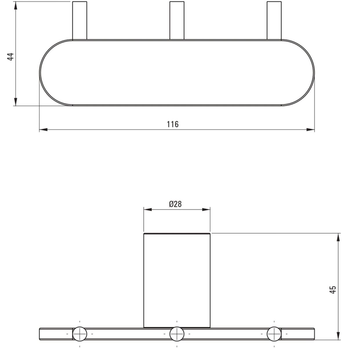 Der Dreifachhaken aus der Round-Kollektion ist ein unverzichtbares Accessoire, das Ordnung in Ihr Badezimmer bringt. Ideal zum Aufhängen von Handtüchern und Bademänteln. Der Haken ist aus hochwertigem Stahl gefertigt und in mattem Schwarz gehalten. Er ist einfach zu montieren und passt perfekt zu Armaturen in Nero-Ausführung.