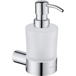Der Seifenspender stammt aus der Accessoire-Kollektion Round. Die Flasche besteht aus Milchglas und die Pumpe ist mit glänzendem Chrom veredelt. Der Spender ist für die Wandmontage vorgesehen und passt ideal zu Armaturen und Duschköpfen in derselben Farbe.