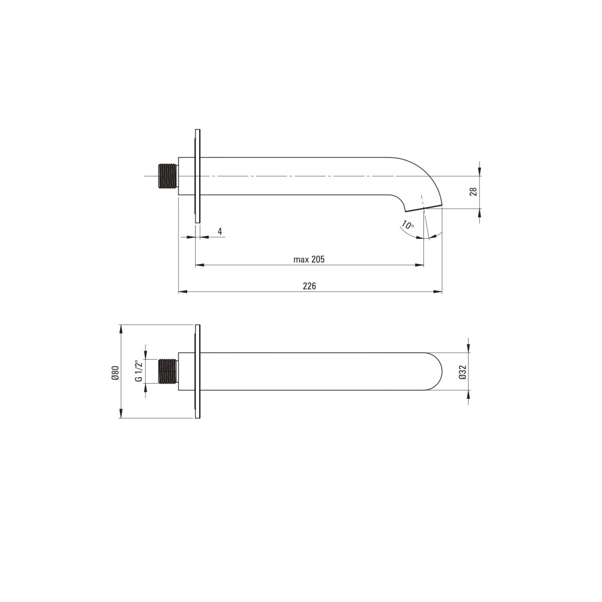 - Auslaufweite der Brause/Wannen [mm]: 205