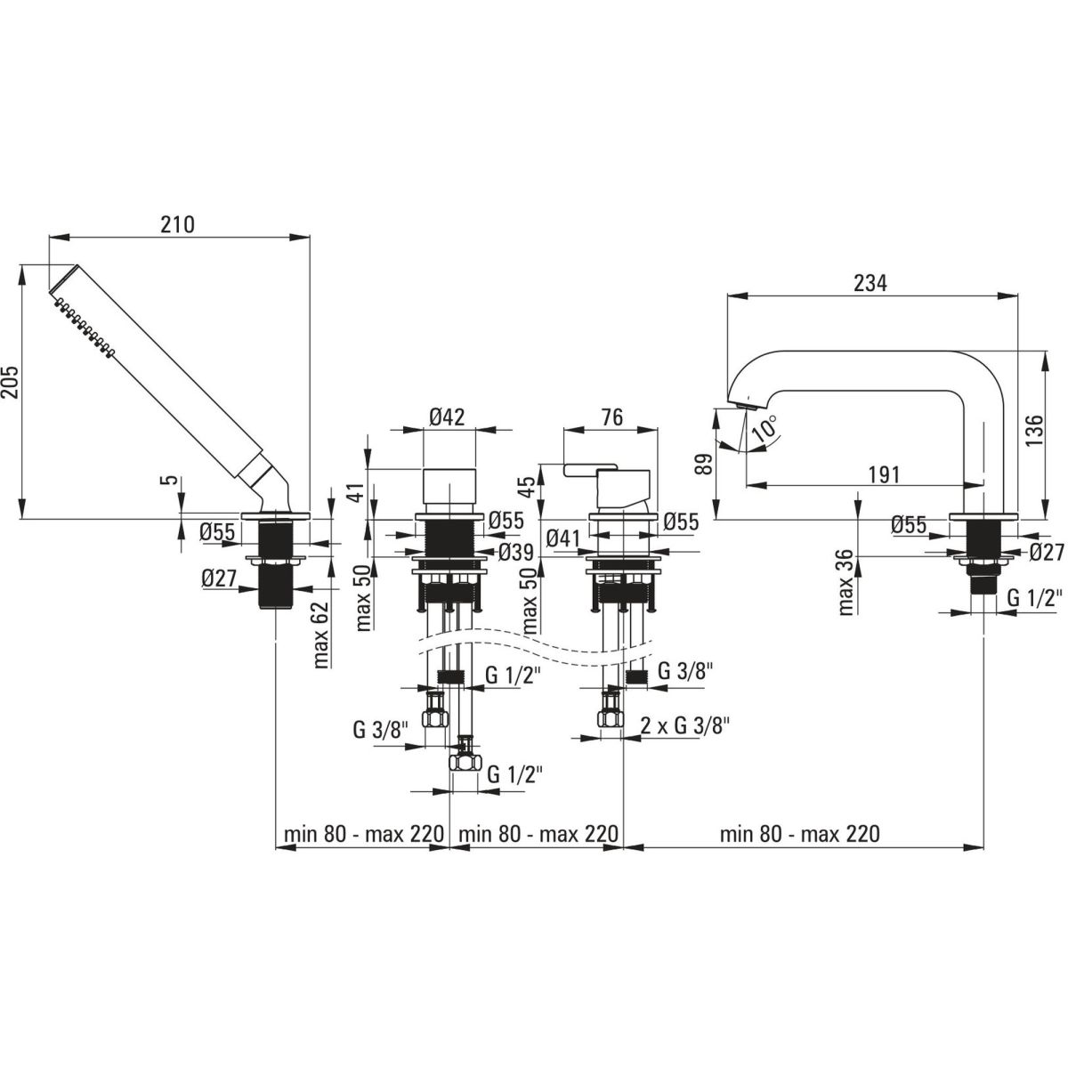 - Länge der Anschlussschläuche [mm]: 450