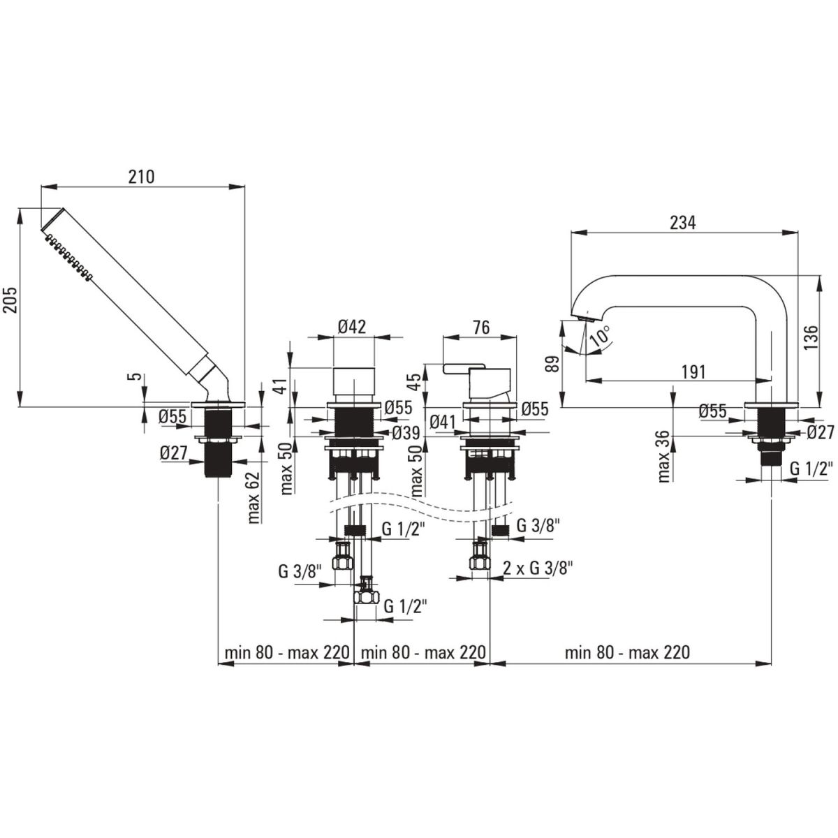 - fester Auslauf aus Messing mit einer Auslaufweite von 19,1 cm