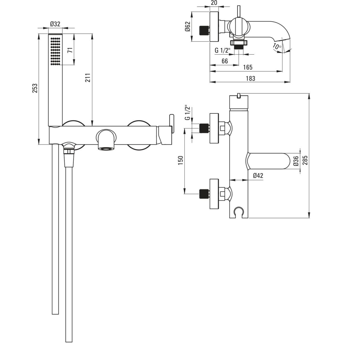 Deante Silia Badewannen- und Duscharmatur Wandmontage || BQS_D11M