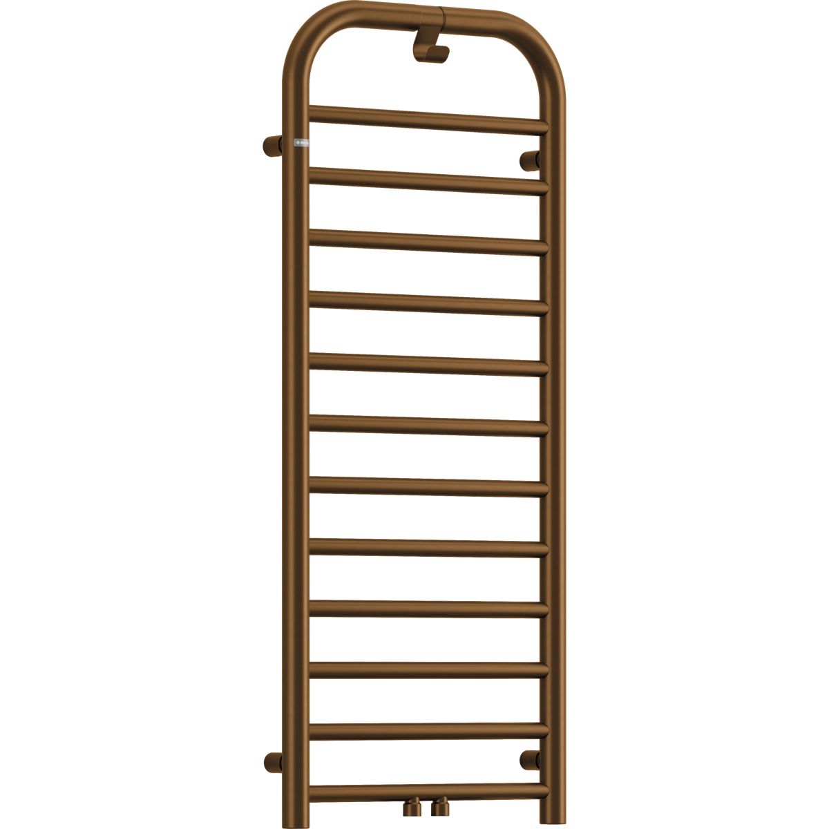 Der Badheizkörper in mattem Braun, Größe 1210x500, zeichnet sich durch geschwungene Linien und eine einzigartige Oberfläche aus. Er verfügt über einen praktischen Haken für Handtücher oder Bademäntel. Hybridmodell: Wasser-Elektro-Heizkörper, der die Montage eines 400-W-Heizelements zum Beheizen des Raums oder zum Trocknen von Handtüchern außerhalb der Heizperiode ermöglicht. Für den Heizkörper muss ein Ventil zusätzlich erworben werden. Sowohl der optionale Heizkörper als auch das erforderliche Ventil sind in derselben Farbe wie der Heizkörper erhältlich.