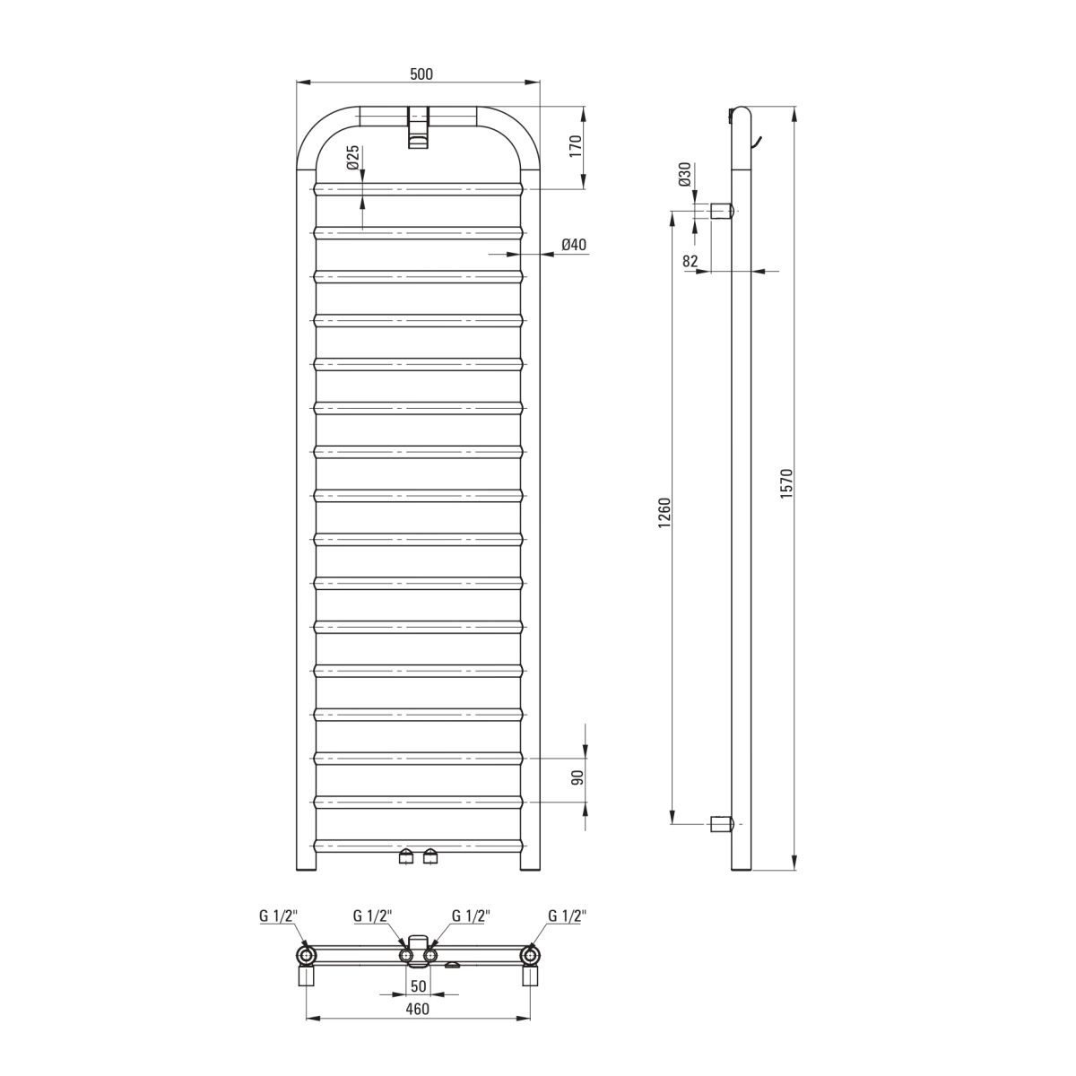 Der mattschwarze Badheizkörper in der Größe 1570 x 500 mm zeichnet sich durch seine abgerundete Form und seine einzigartige Oberfläche aus. Der praktische Haken für Handtücher oder Bademäntel macht ihn ideal für jedes Badezimmer. Hybridmodell für Wasser- und Strombetrieb mit der Möglichkeit, einen optionalen 600-W-Heizstab zu montieren, der zusätzliche Wärme oder schnelles Trocknen von Handtüchern außerhalb der Heizperiode bietet. Für den Heizkörper muss ein Ventil zusätzlich erworben werden. Sowohl der optionale Heizstab als auch das erforderliche Ventil sind in derselben Farbe wie der Heizkörper erhältlich.