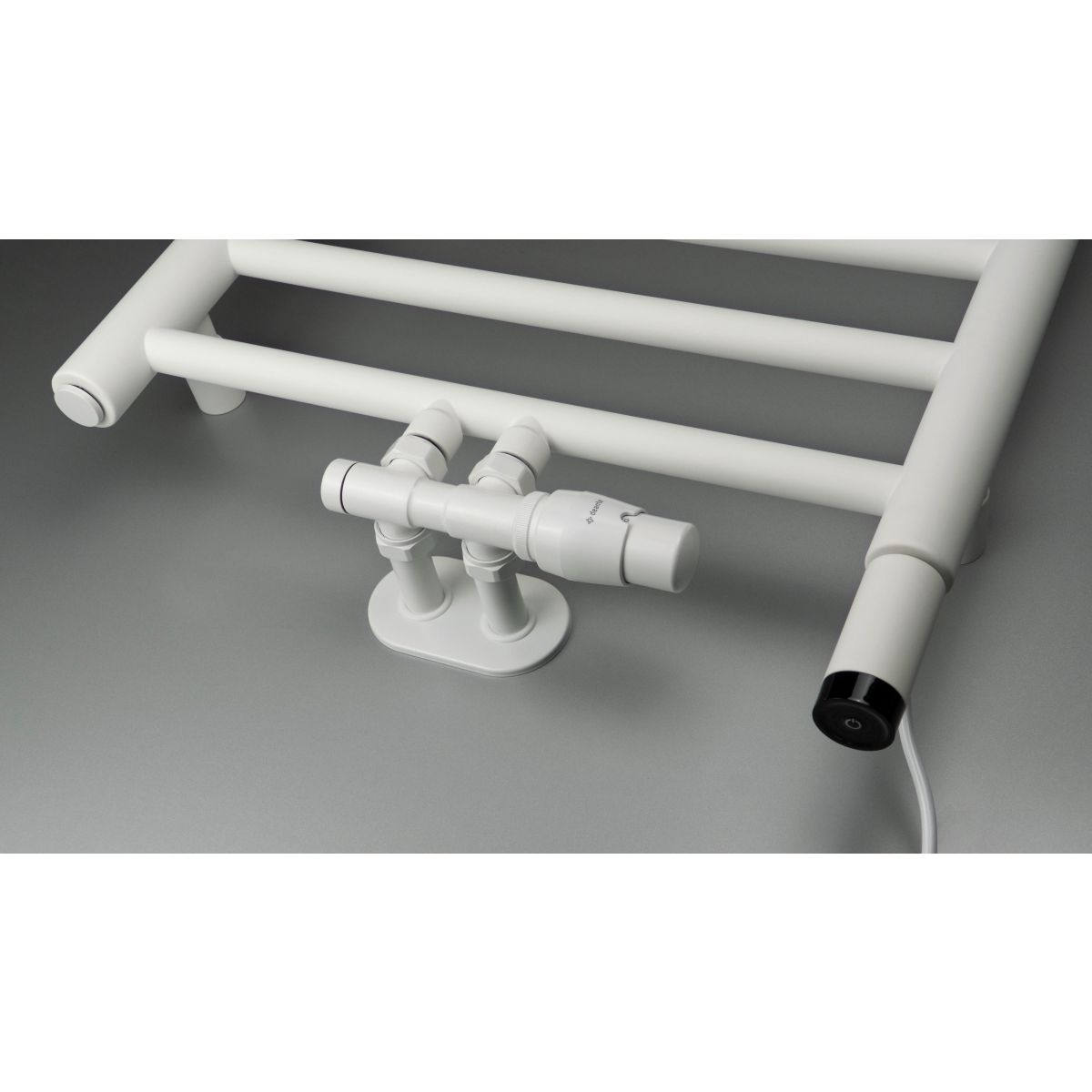 Der elegante Badheizkörper mit den Maßen 850 x 500 zeichnet sich durch sanfte Linien und eine einzigartige weiße Oberfläche aus. Er ist mit einem praktischen Haken für Handtücher oder Bademäntel ausgestattet. Es handelt sich um ein Hybridmodell: wasser- und strombetrieben, mit der Möglichkeit, einen optionalen Heizkörper anzubringen, der für zusätzliche Wärme sorgt oder Handtücher außerhalb der Heizperiode trocknet. Der 400-W-Heizkörper ist im Angebot von Deante erhältlich. Für den Heizkörper muss ein Ventil zusätzlich erworben werden. Sowohl der optionale Heizkörper als auch das erforderliche Ventil sind in derselben Farbe wie der Heizkörper erhältlich.
