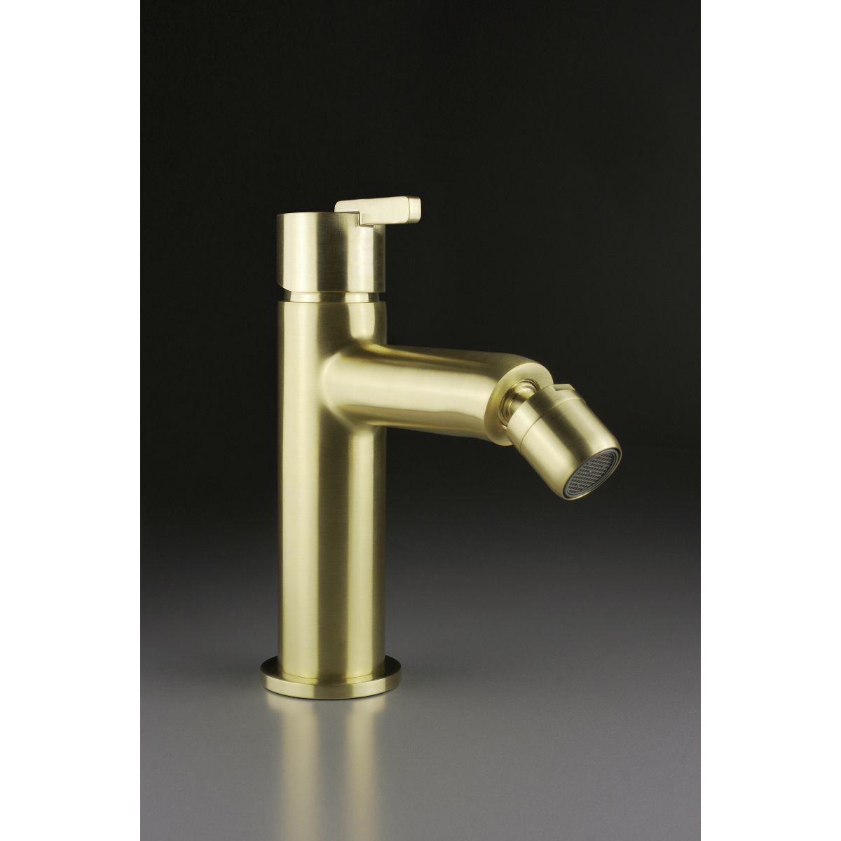 Die Bidetarmatur gehört zur entworfenen Kollektion Silia. Sie wurde aus strapazierfähigem Messing gefertigt und mit einem Keramikkopf ausgestattet. Silia ist eine Neuinterpretation eines der klassischsten Modelle in der Geschichte der Badarmaturen. Die gesamte Serie hat die Form eines gebogenen Rohrs, wodurch die Produkte stromlinienförmig und abgerundet sind. Die Bidetarmatur verfügt über einen beweglichen Auslauf, sodass Sie den Wasserstrahl frei lenken können. Sie ist in der trendigen Farbe Brushed Gold gehalten.