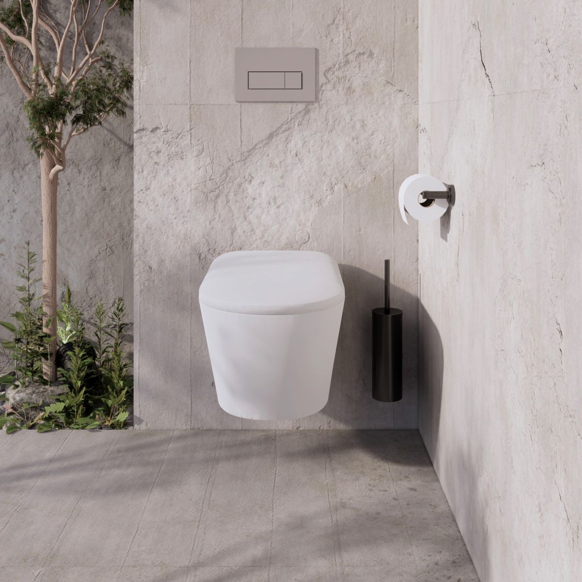 - Die Smart-Toilettenschüssel wird auf einem standardmäßigen Deante-Unterputzgestell montiert