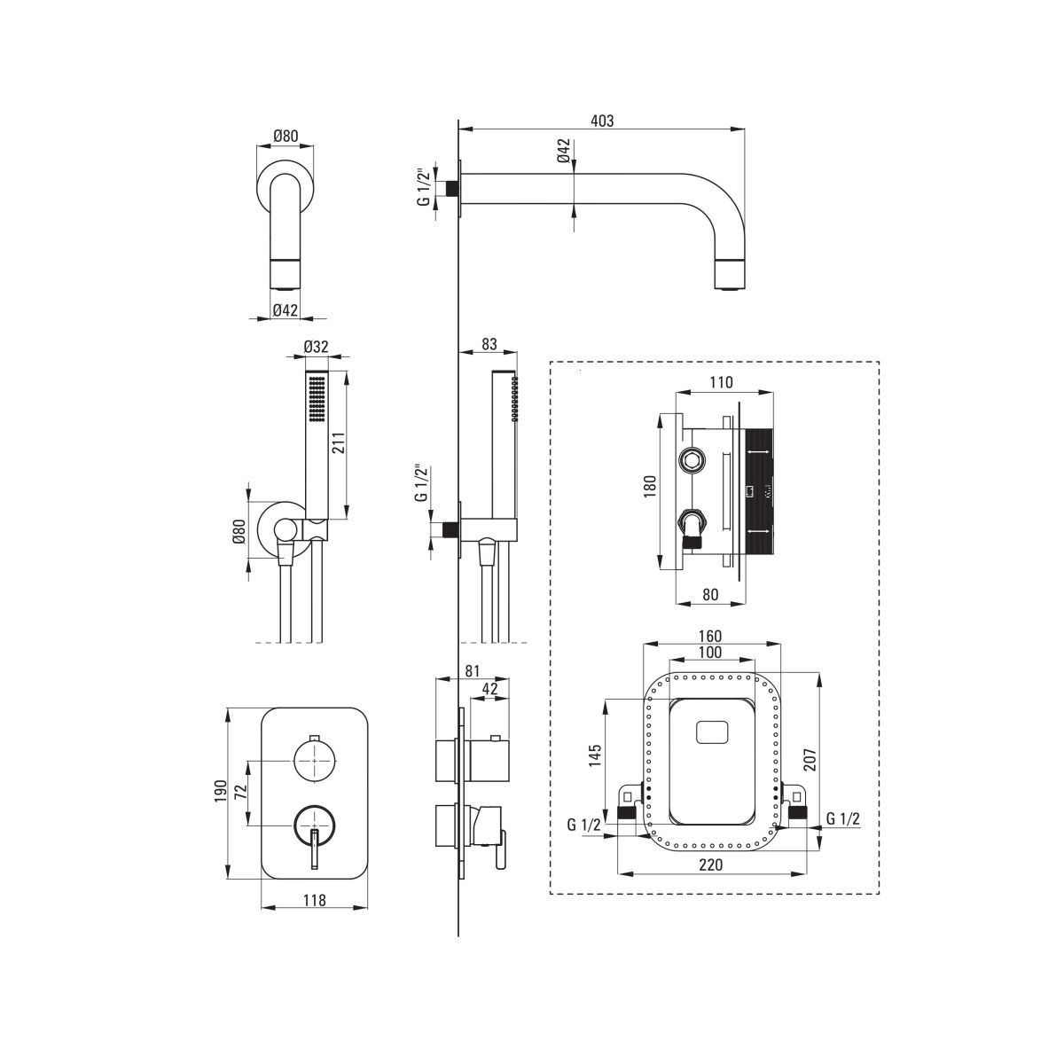 - Armaturentyp: Unterputz-BOX, Mischbatterie