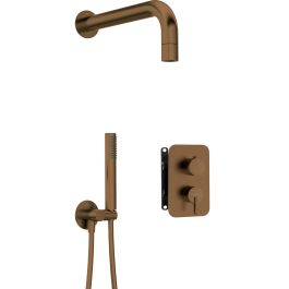 Das Duschset Silia besteht aus einer Wandbrause mit Duschkopf, einem Mischbatteriegehäuse, einem Schlauch, einer Handbrause und einem Winkelanschluss. Der Duschkopf hat einen kegelförmigen Strahl mit optimaler Intensität. Der Schlauch mit Anti-Twist-System verdreht sich während des Gebrauchs nicht. Die Handbrause ist aus hochwertigem Edelstahl gefertigt und verfügt über einen angenehmen Regenstrom. Der Winkelanschluss ist beweglich, sodass der Neigungswinkel der Handbrause frei eingestellt werden kann. Das gesamte Set ist in gebürstetem Bronze gehalten, was dem Innenraum einen warmen, dezenten Glanz verleiht und hervorragend mit natürlichen Materialien harmoniert.