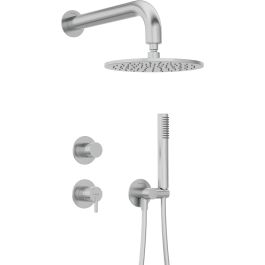Das Duschset Silia besteht aus einem Wandarm mit Regenduschkopf, einer Armatur, einem Schlauch, einer Handbrause und einem Winkelanschluss. Die Armatur verfügt über einen keramischen, mechanischen Funktionsschalter. Der Messing-Duschkopf ist mit einem Anti-Kalk-System ausgestattet, das die Reinigung erleichtert. Der Schlauch mit Anti-Twist-System verdreht sich während des Gebrauchs nicht. Die aus hochwertigem Edelstahl gefertigte Handbrause verfügt über einen optimalen Regenstrahl. Der Winkelanschluss ist beweglich, sodass der Neigungswinkel der Handbrause frei eingestellt werden kann. Das gesamte Set ist in der universellen Farbe gebürsteter Stahl gehalten.