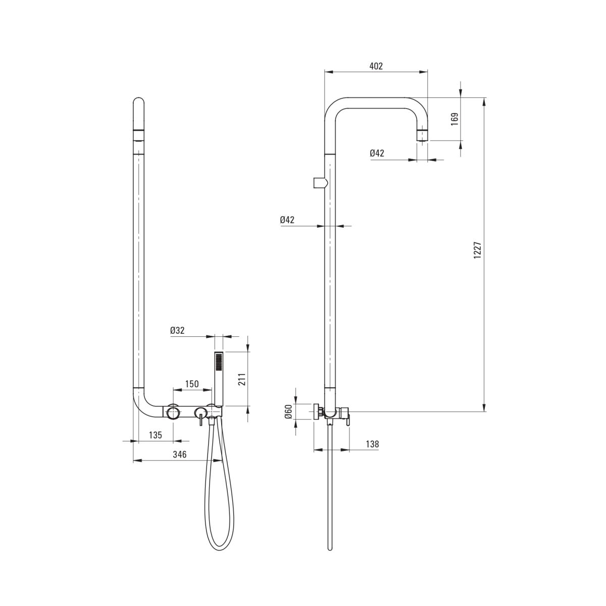 - Inbegriffen: Batterie mit Schalter, Duschkopf, Duschkopf, Duschschlauch, Duschstange