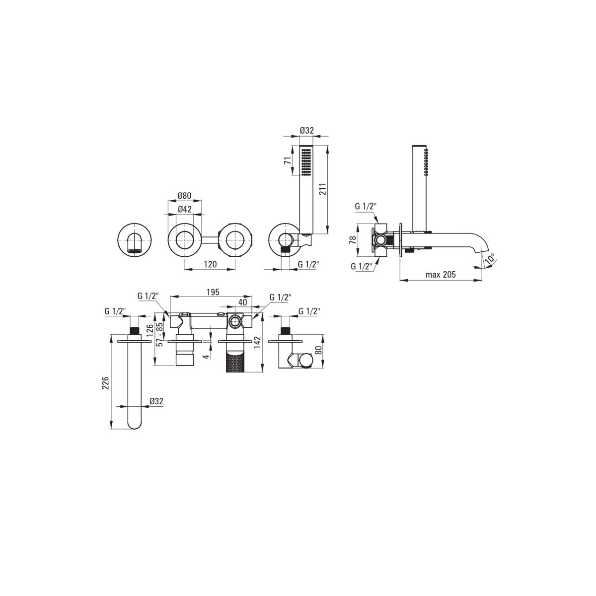 - Auslaufweite der Brause/Wannenauslauf [mm]: 205
