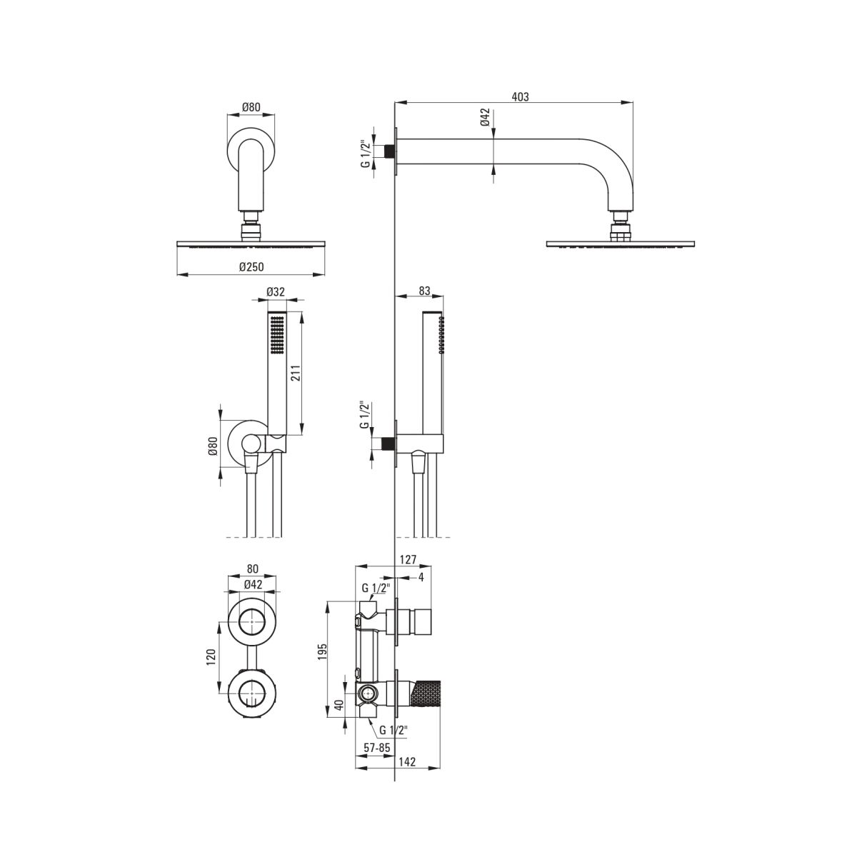 - Inbegriffen: Batterie mit Schalter, Duschkopf, Duschkopf, Duschschlauch, Eckanschluss