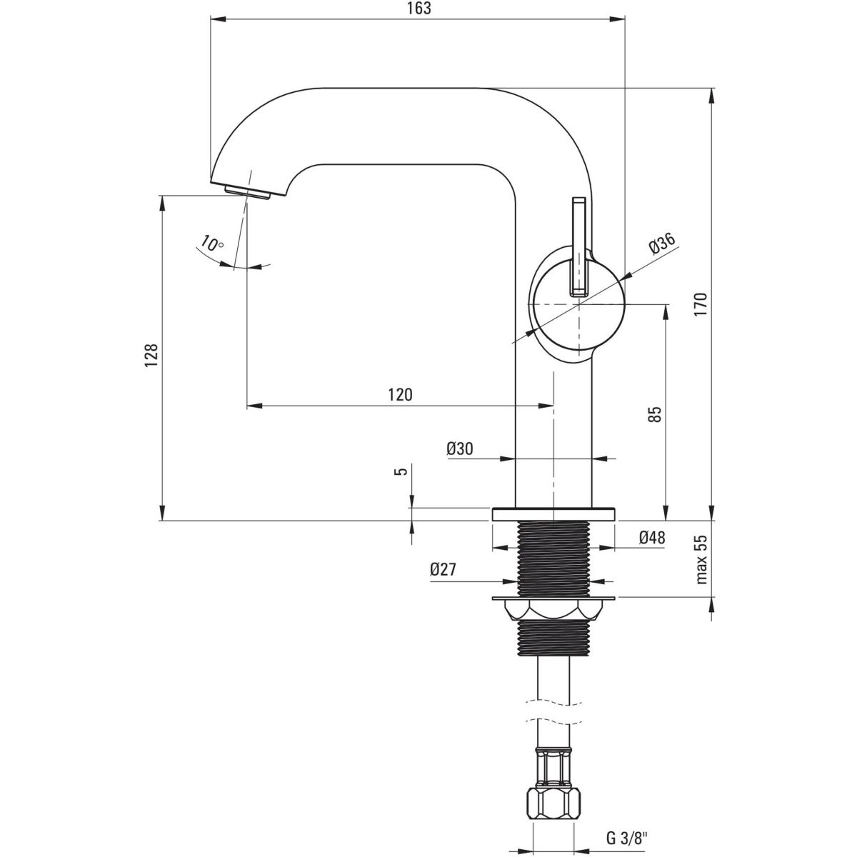 - Seitlich angeordneter Hebel erleichtert die Reinigung des Auslaufs