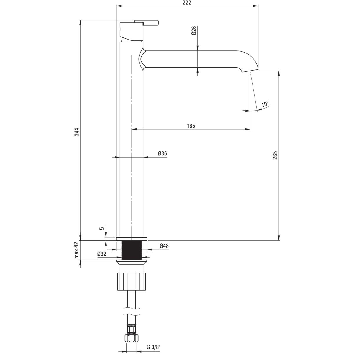 - fester Auslauf aus Messing mit einer Auslaufweite von 18,5 cm