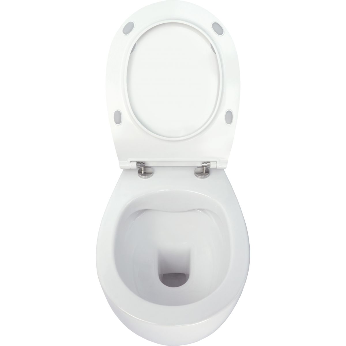 Die Wandtoilette Sillia wird zusammen mit einem Toilettensitz angeboten. Der Toilettensitz verfügt über eine Soft-Close-Funktion und lässt sich leicht abnehmen. Die Toilettenschüssel ist randlos und leicht zu reinigen. So bleibt Ihre Toilette länger hygienisch sauber. Das Wasser wird über den gesamten Umfang der Schüssel verteilt, sodass diese auch mit wenig Wasser gründlich gespült wird. Das Produkt wurde aus hochwertiger, langlebiger Keramik gefertigt.