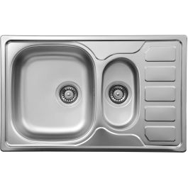 Die Stahlspüle Soul zeichnet sich durch eine solide Verarbeitung und eine dekorative Oberfläche aus. Stahl hat antiseptische Eigenschaften, ist kratzfest und nimmt keine Gerüche an. Die Spüle ist umkehrbar, Sie können sie mit der Kammer auf der rechten oder linken Seite montieren. Das Modell verfügt über 1,5 Becken, wobei das kleinere zum Waschen von Obst und Gemüse verwendet werden kann. Im Lieferumfang ist ein manueller Stöpsel enthalten.