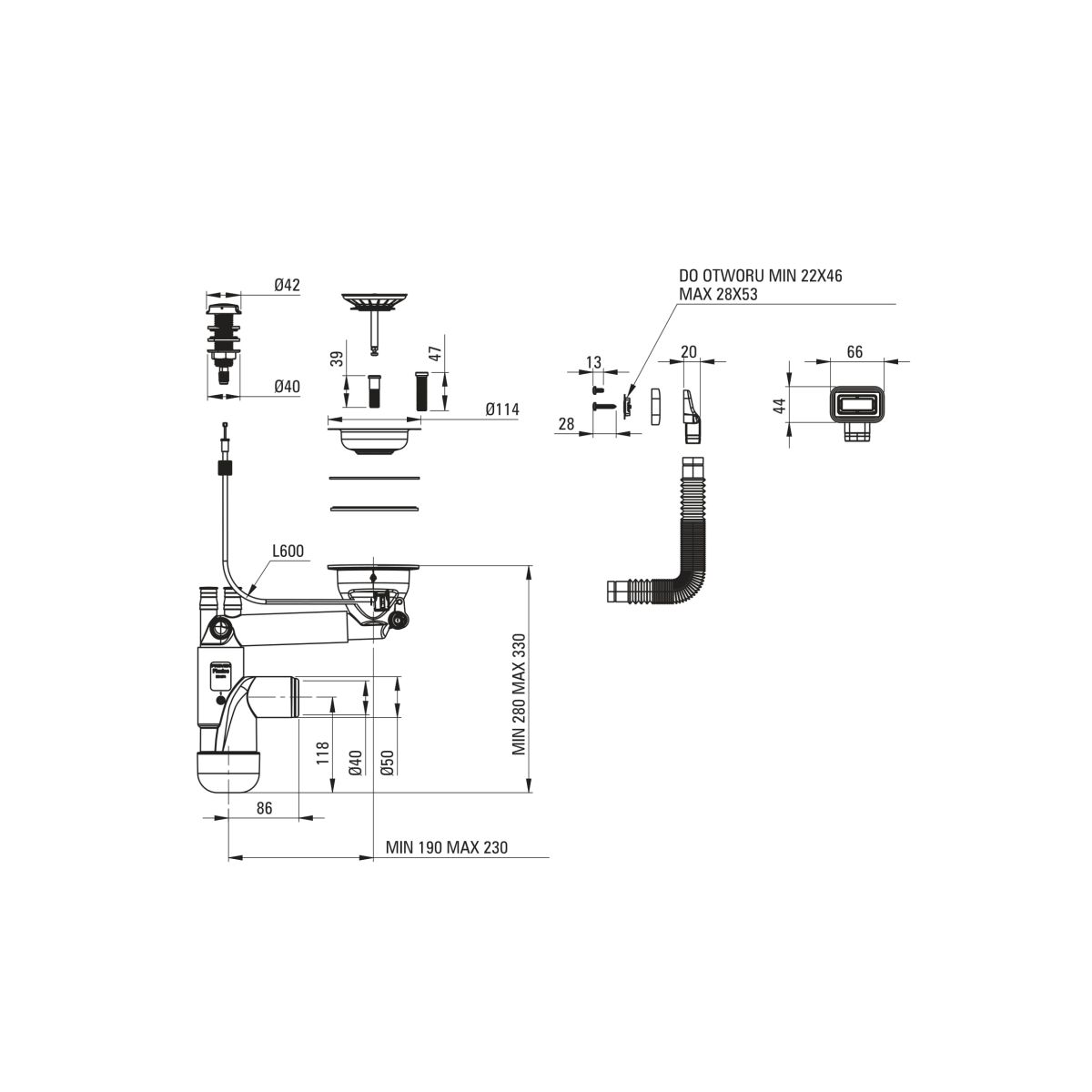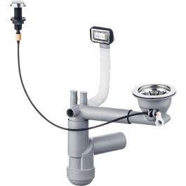 Der Siphon Spacer-Saver Lux ist für einkammerige, eingelassene Granit- und Stahlspülen vorgesehen. Seine Konstruktion spart viel wertvollen Platz unter dem Schrank. Im Set enthalten sind ein rechteckiger Überlauf mit Verschlusskappe und ein automatischer Stöpsel. Die Armaturen sind in klassischer Stahloptik gehalten.