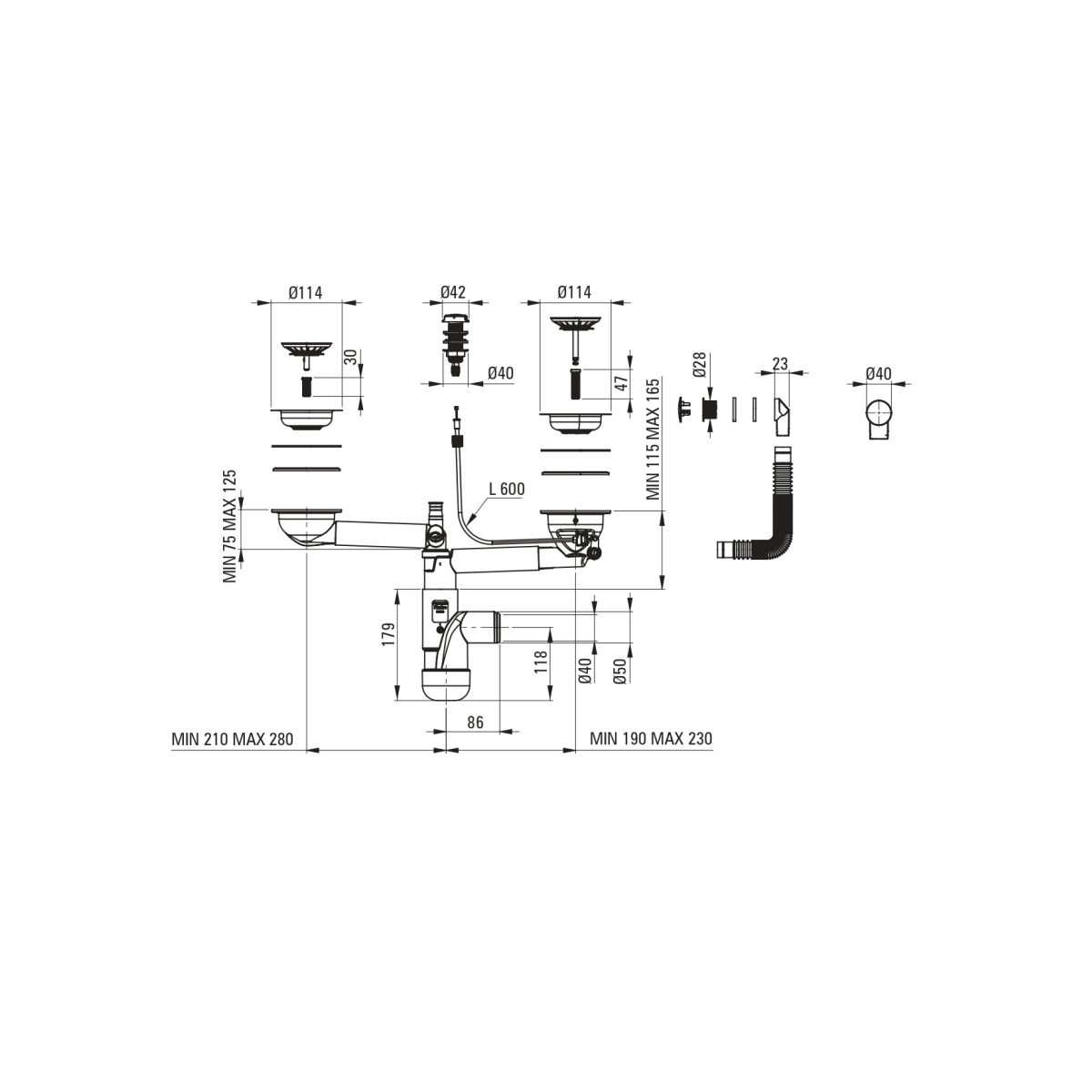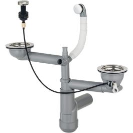 Der Siphon Space-saver Lux ist für einbaufertige Granitspülen mit 1,5 und 2 Kammern bestimmt. Dank seiner minimalistischen Konstruktion nimmt der Siphon nur sehr wenig wertvollen Platz im Schrank ein. Im Set enthalten sind ein runder Überlauf mit Verschlusskappe und ein automatischer Stöpsel. Alles in klassischer Stahlausführung.