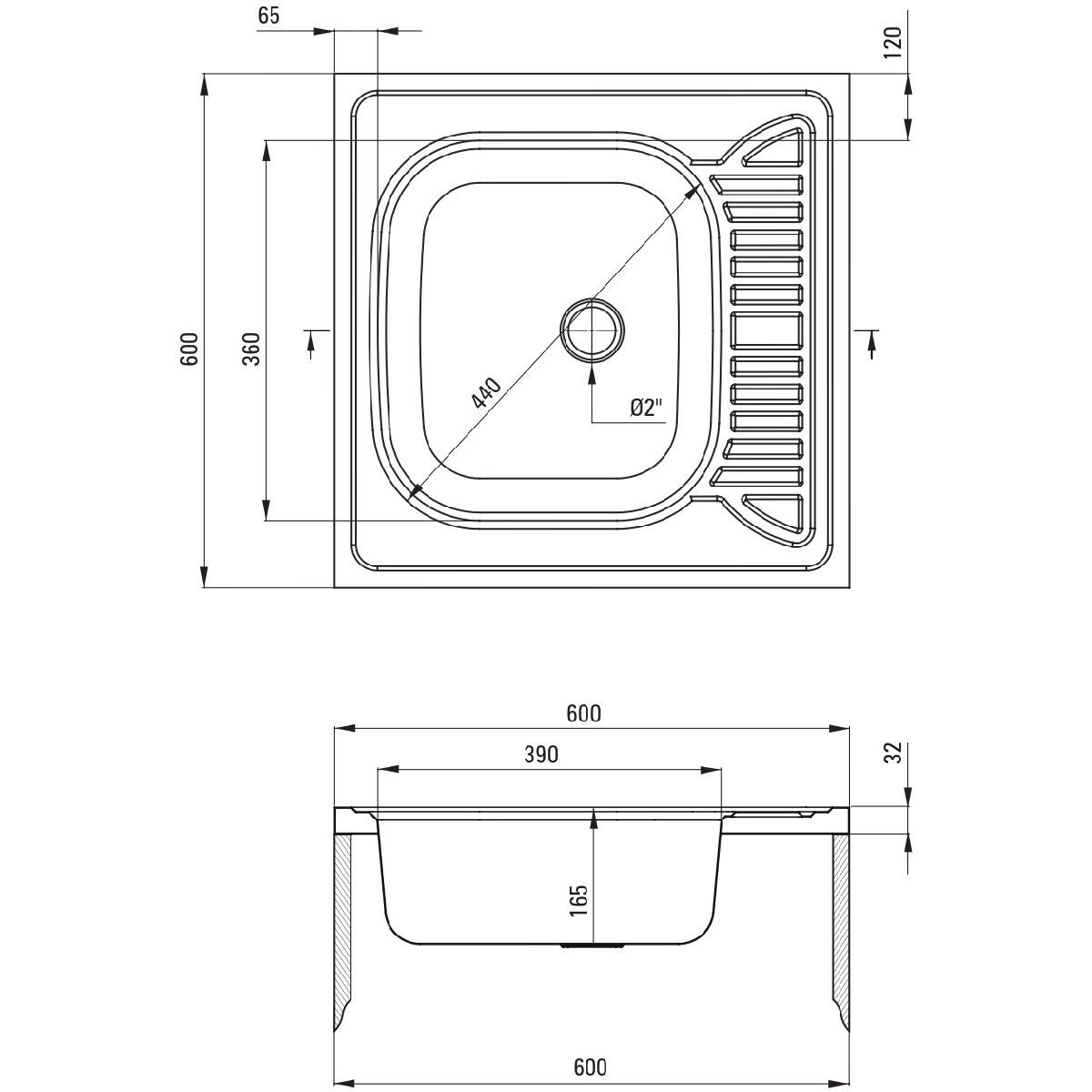 - Durchmesser des Abflusses: 2''