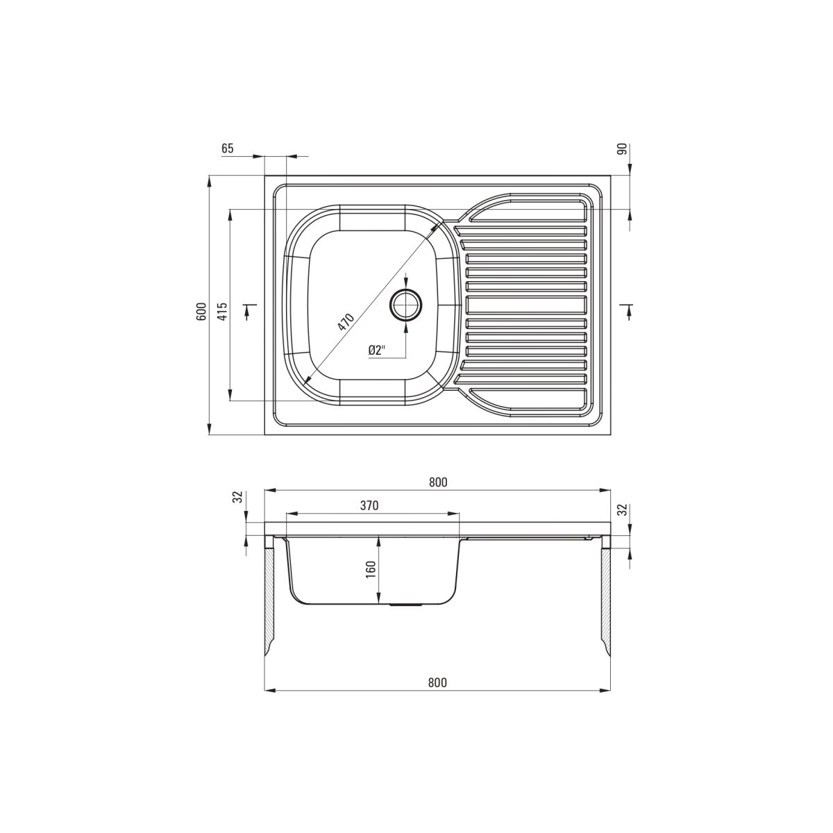 - Durchmesser des Abflusses: 2''