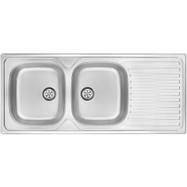 Die Spüle Techno ist aus kratzfestem Stahl mit einer effektvollen satinierten Oberfläche gefertigt. Stahl hat natürliche antiseptische Eigenschaften und seine perfekt glatte Oberfläche ist leicht sauber zu halten. Die Spüle verfügt über zwei identische Becken und einen großen Abtropfbereich, der auch als Trockner für gespültes Geschirr dient. Im Lieferumfang ist auch ein manueller Stöpsel enthalten.