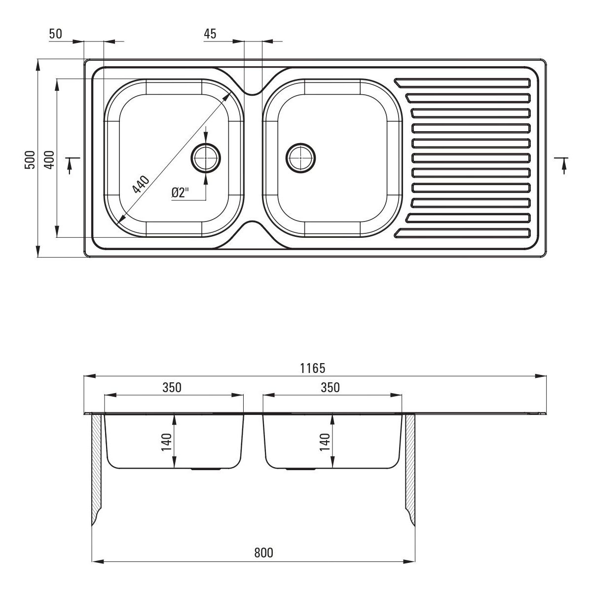- Anzahl der Spülbeckenkammern: 2