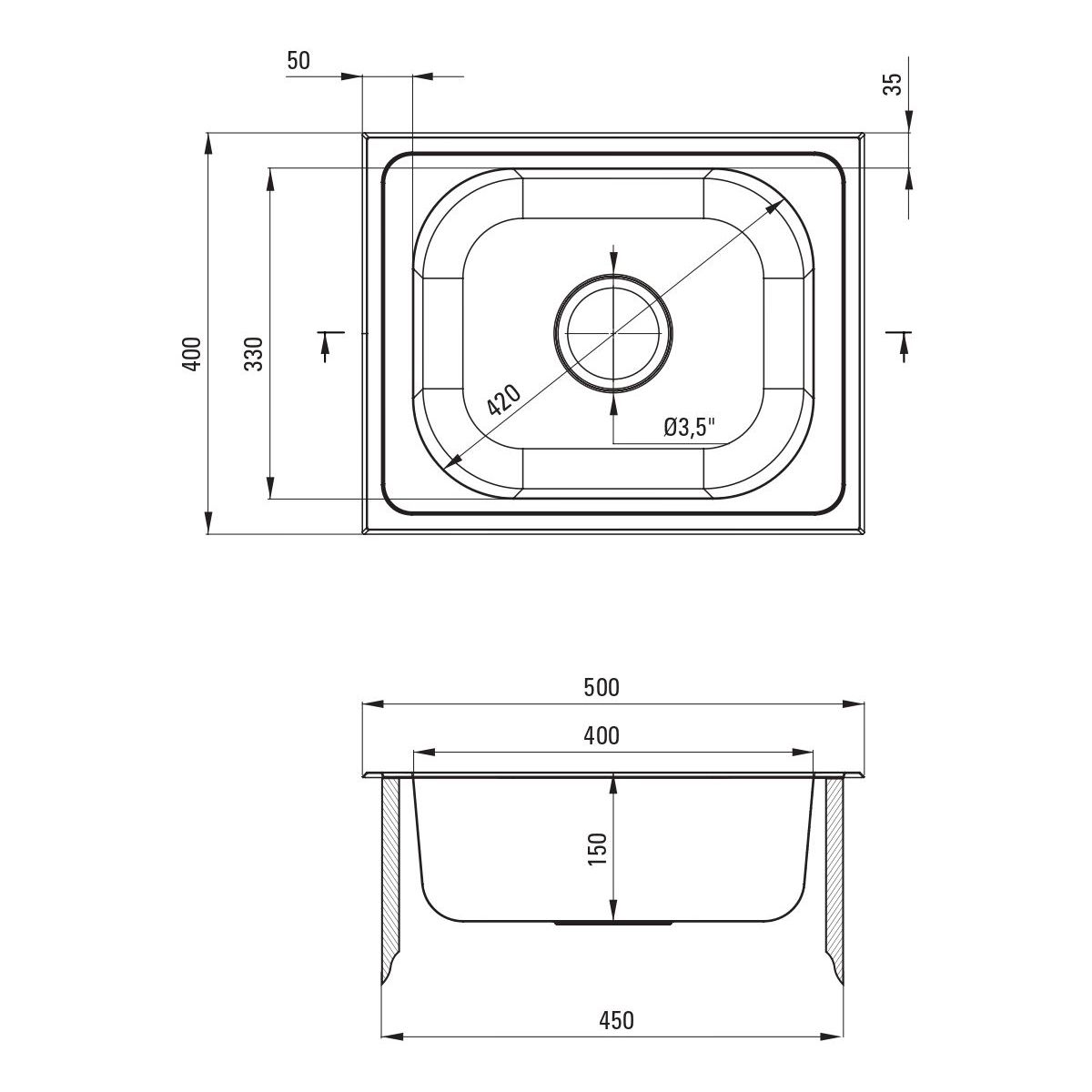 - Ablaufdurchmesser: 3,5''