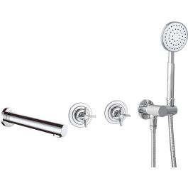 Die Unterputz-Badewannenarmatur Temisto ist die Essenz der Verbindung von Retro-Stil und Modernität und passt perfekt zum Geschmack von Menschen, die stilvolle, aber funktionale Lösungen für ihr Badezimmer suchen. Das Set enthält einen eleganten Wannenauslauf, der klassisches Design mit der Widerstandsfähigkeit der verwendeten Materialien verbindet und Langlebigkeit und Zuverlässigkeit für viele Jahre garantiert. Zum Set gehört auch eine innovative Mischbatterie mit progressivem Kopf, die dem Benutzer eine stufenlose Regelung der Wassertemperatur und ein einfaches Umschalten des Wasserstrahls zwischen Handbrause und Auslauf ermöglicht. Die Handbrause ist mit einem flexiblen Schlauch und einem verstellbaren Punktgriff ausgestattet und bietet maximalen Komfort, da sie an individuelle Bedürfnisse und Vorlieben angepasst werden kann. Das gesamte Set ist in elegantem, glänzendem Chrom gehalten.