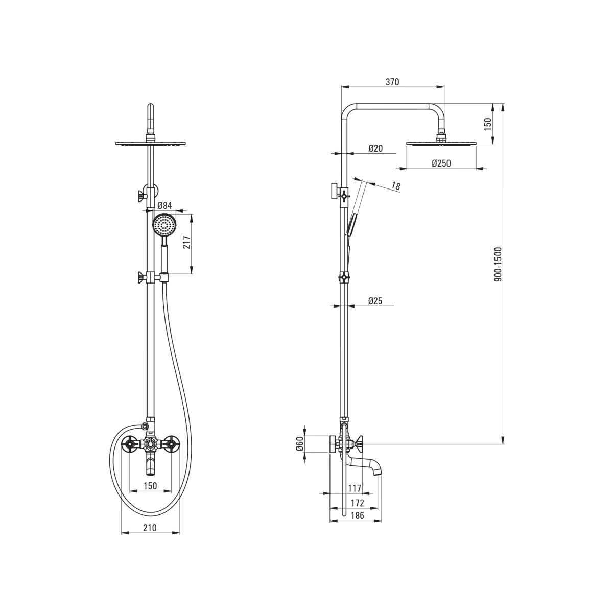 - Inbegriffen: Batterie mit Schalter, Duschkopf, Duschkopf, Duschschlauch, Duschstange