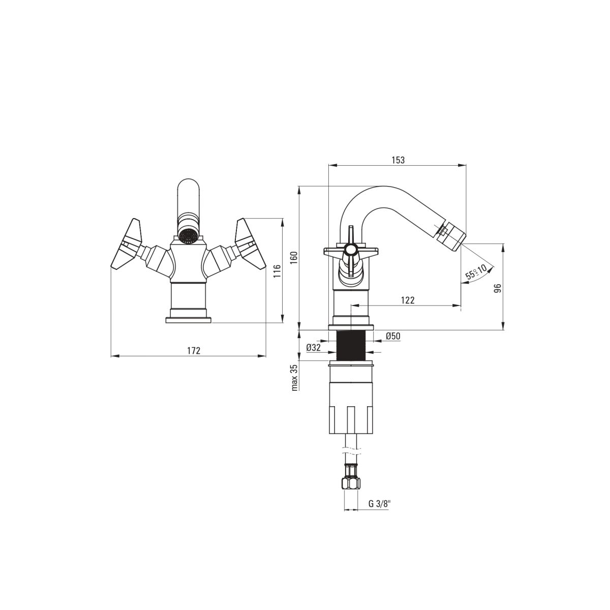 - Armaturentyp: Zweigriffarmatur, Mischbatterie