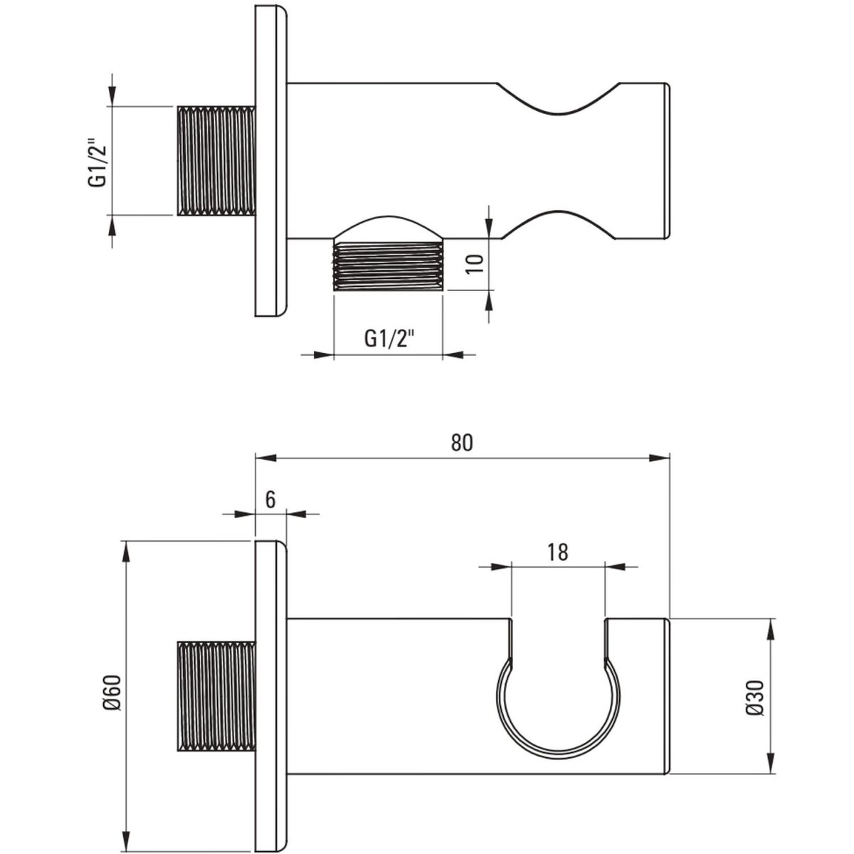 - Winkelanschluss aus Messing für Schlauch mit Handbrausehalterung