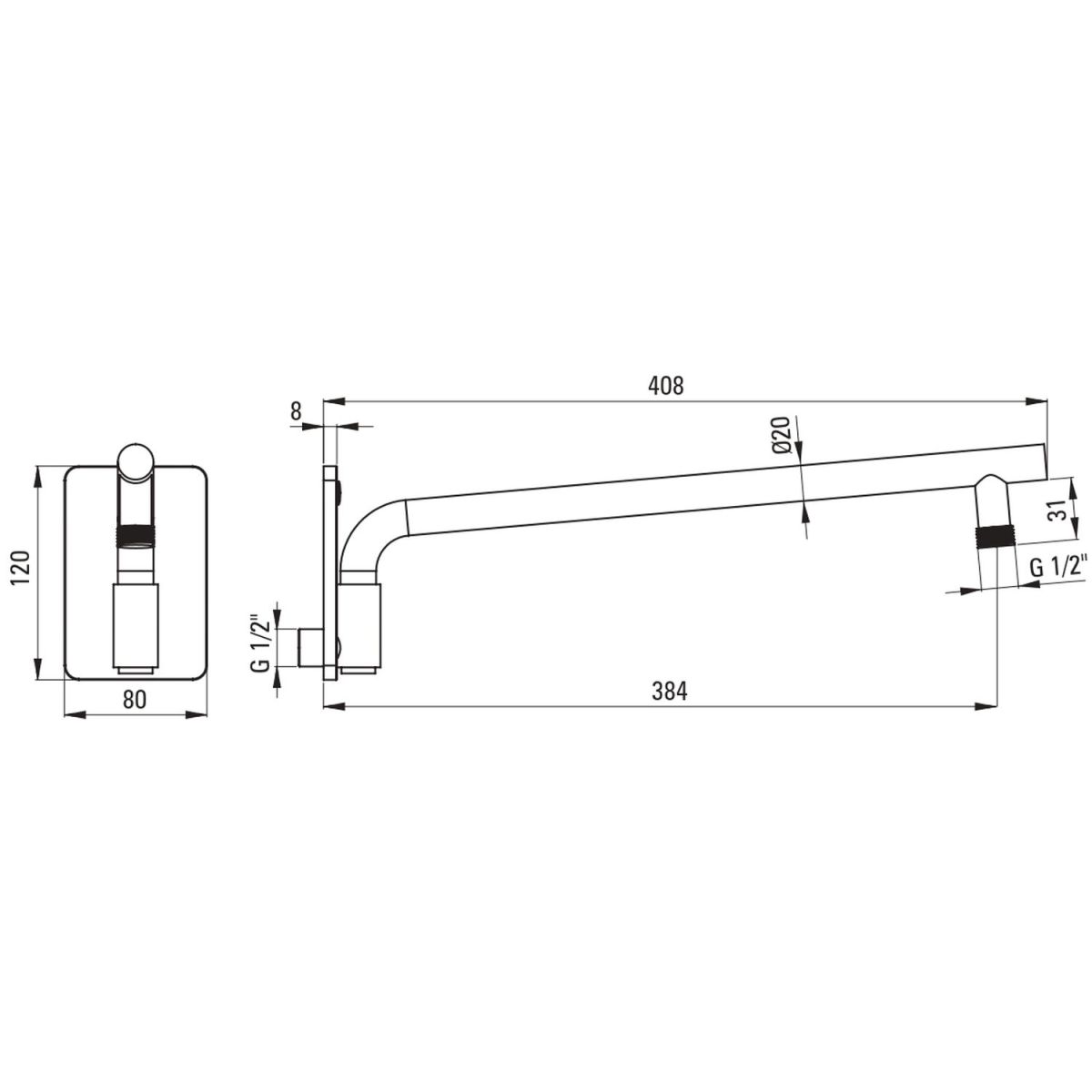 - Duscharm mit einer Länge von 38,4 cm