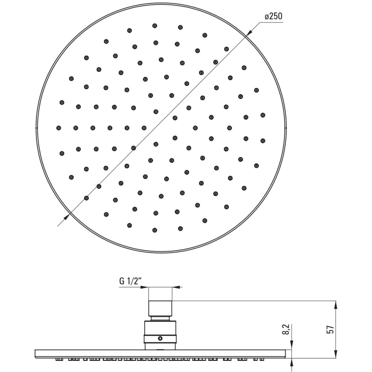 - runde Kopfbrause mit einem Durchmesser von 25 cm, 1-funktional mit Anti-Kalk-System aus Messing