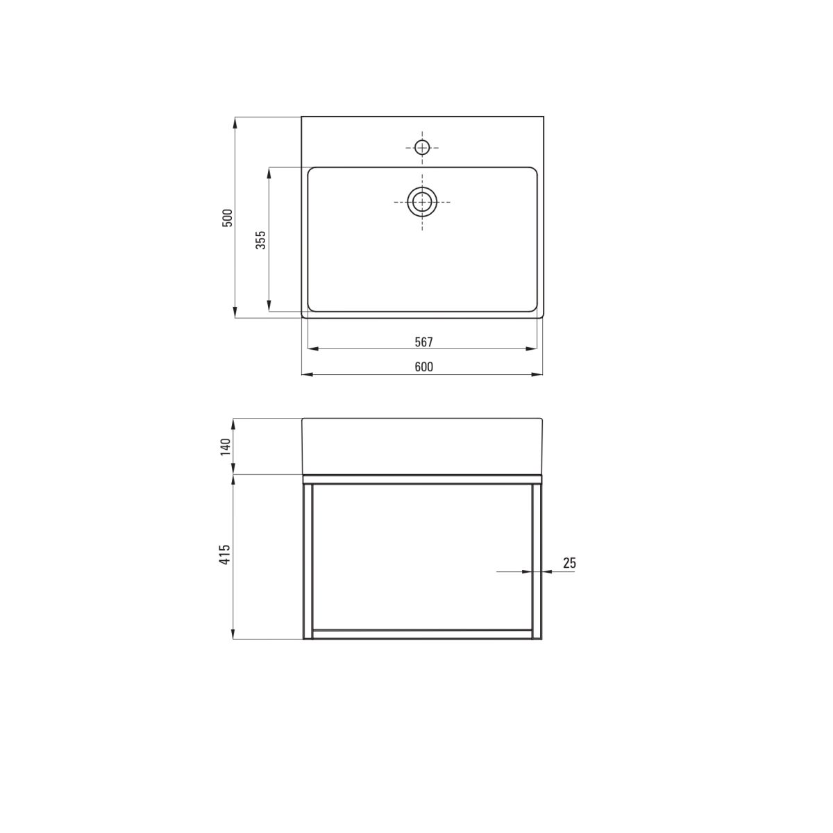- Loch für Wasserhahn