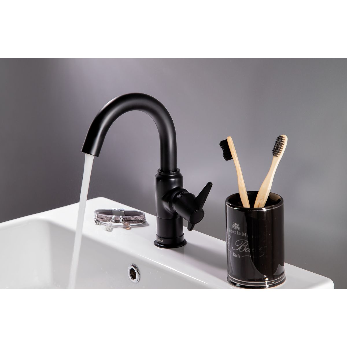 Die Mischbatterie verfügt über einen komfortablen, äußerst effektiven Griff. Ihr Körper besteht aus hochwertigem Messing, das für Langlebigkeit und Zuverlässigkeit des Produkts sorgt. Der bewegliche Silikonbelüfter ermöglicht es, den Wasserstrahl zu lenken und gleichzeitig zu belüften. Die Armatur ist in einem effektvollen Mattschwarz gehalten, das in Kombination mit Stein oder Beton dem Innenraum einen industriellen Charakter verleiht.