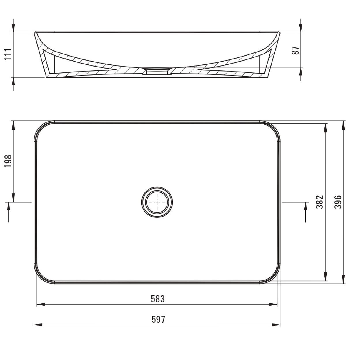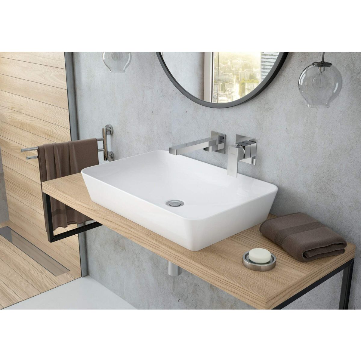 Deante Tess Waschbecken 59.7x39.6 cm rechteckig Aufsatzwaschbecken weiß CDS_6U6S