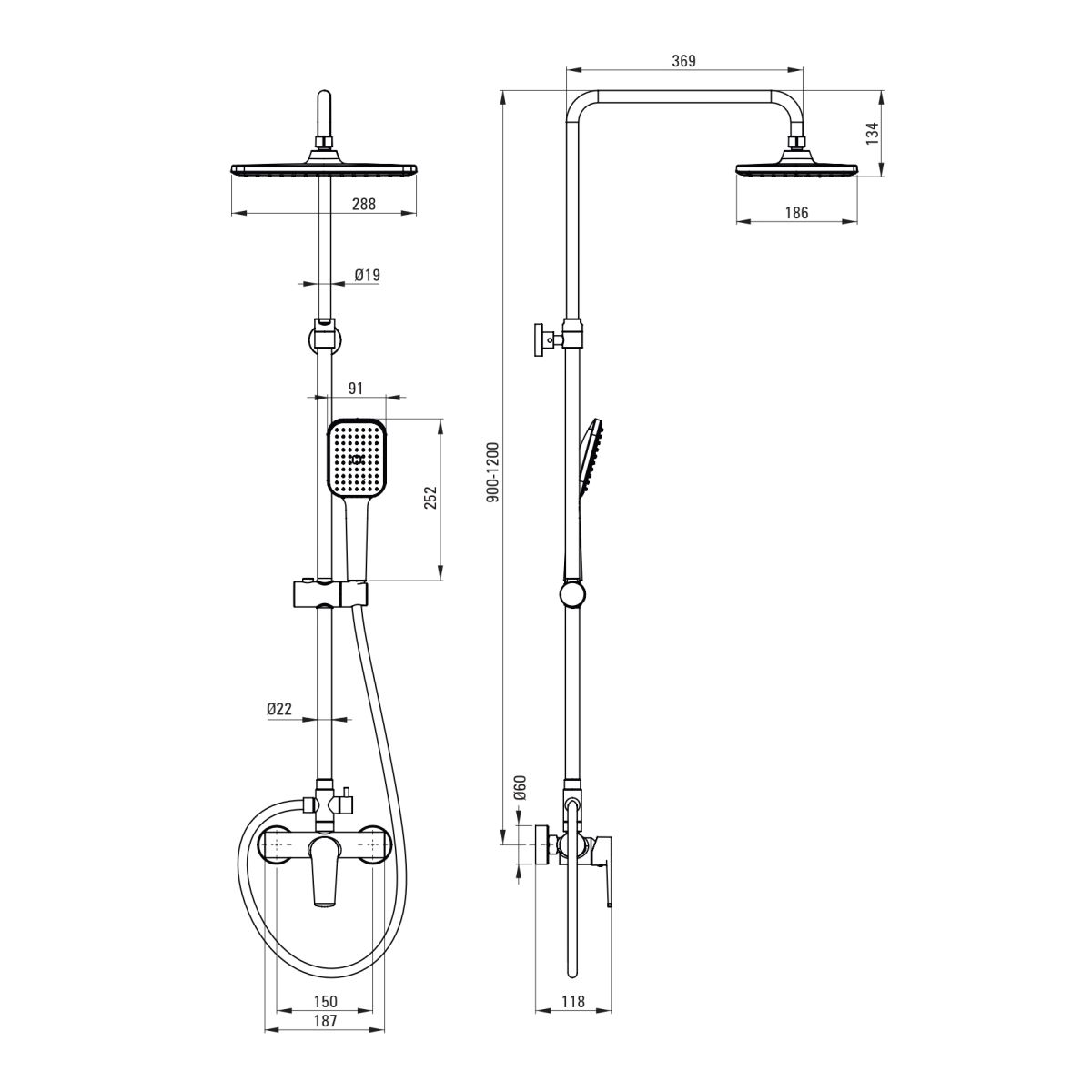 - Inbegriffen: Batterie mit Schalter, Duschkopf, Duschkopf, Duschschlauch, Duschstange