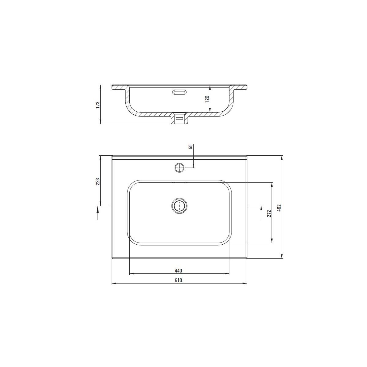 Keramik-Waschbecken zum Einlassen mit Platz für eine Armatur 60 cm
