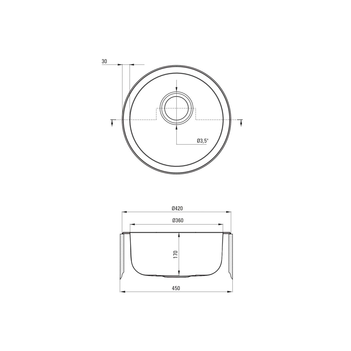 - Ausschnitt in der Arbeitsplatte (Einbau) - Durchmesser: 40 cm