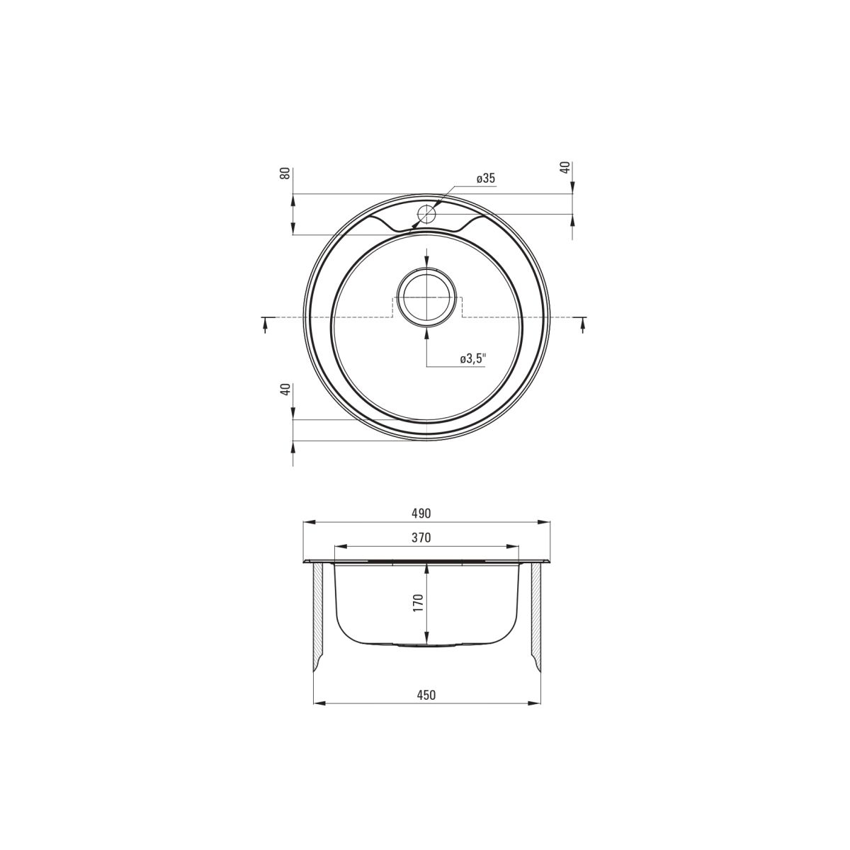 - Durchmesser des Abflusses: 3,5''
