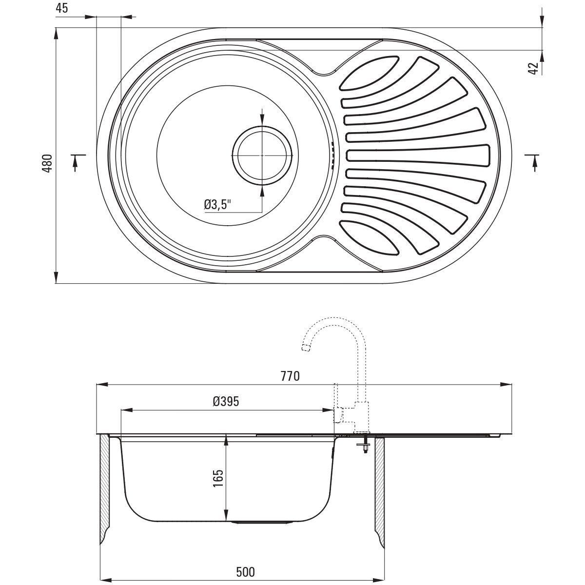 - Abflussdurchmesser: 3,5''