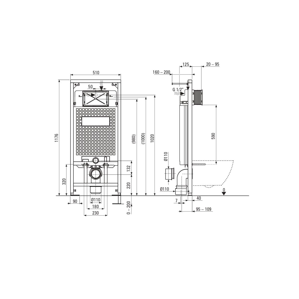 Der Unterputzrahmen ist für wandhängende WC-Becken vorgesehen. Er ist mit einem Doppelspülsystem und einer zusätzlichen Dichtung zur Geräuschdämpfung ausgestattet. Das Ganze wird durch einen stabilen Stahlrahmen stabilisiert.