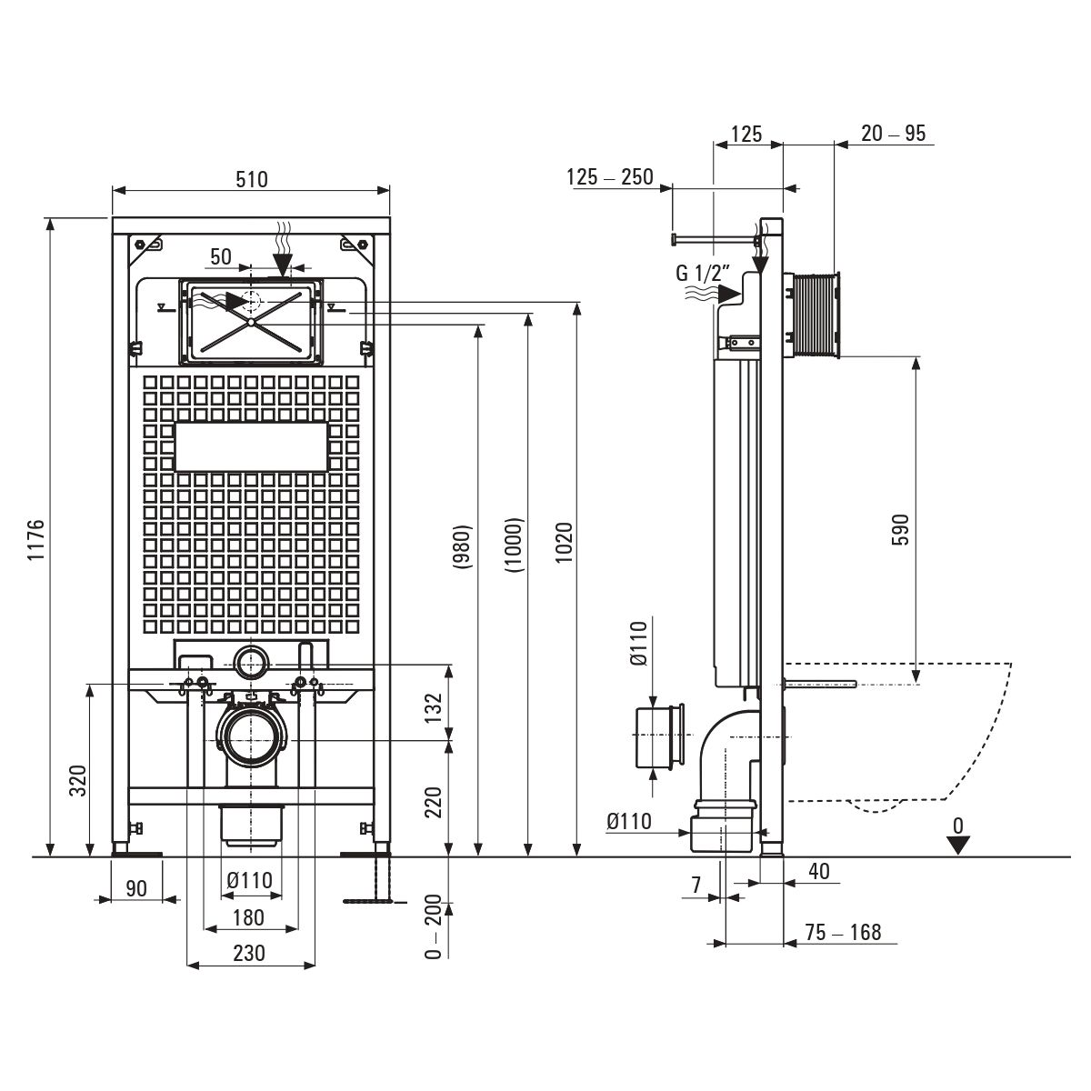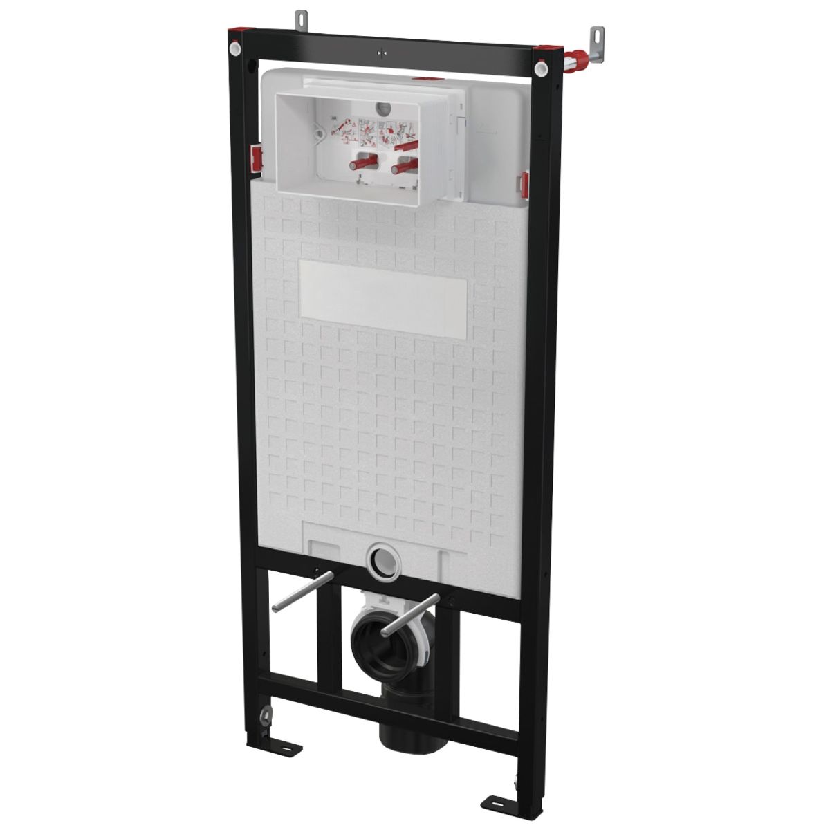 Der Unterputzrahmen ist für wandhängende WC-Becken vorgesehen. Er ist mit einem sparsamen Doppelspülsystem (4 l und 2 l) und einer zusätzlichen Dichtung zur Geräuschdämpfung ausgestattet. Das Ganze wird durch einen stabilen Stahlrahmen stabilisiert.