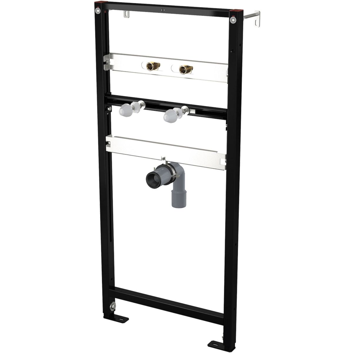 Der Rahmen ist für die Montage von Wandwaschbecken mit der Möglichkeit der Installation einer Standarmatur vorgesehen. Die Konstruktion eignet sich sowohl für die Montage direkt an der tragenden Wand als auch für den Einbau in Gipskartonplatten. Der robuste, selbsttragende Rahmen aus strapazierfähigem, pulverbeschichtetem Metall sorgt für Stabilität und Korrosionsbeständigkeit. Er ist mit verstellbaren Streben und verstellbaren Ankerfüßen mit Bremse im Bereich von 0–200 mm ausgestattet. Der Abstand der Wasseranschlüsse kann in einem weiten Bereich von 80 bis 300 mm angepasst werden, was die Anpassung an verschiedene Sanitärinstallationen erleichtert. Die durchdachte Konstruktion des Rahmens ermöglicht eine einfache und sichere Montage an verschiedenen Wandtypen.
