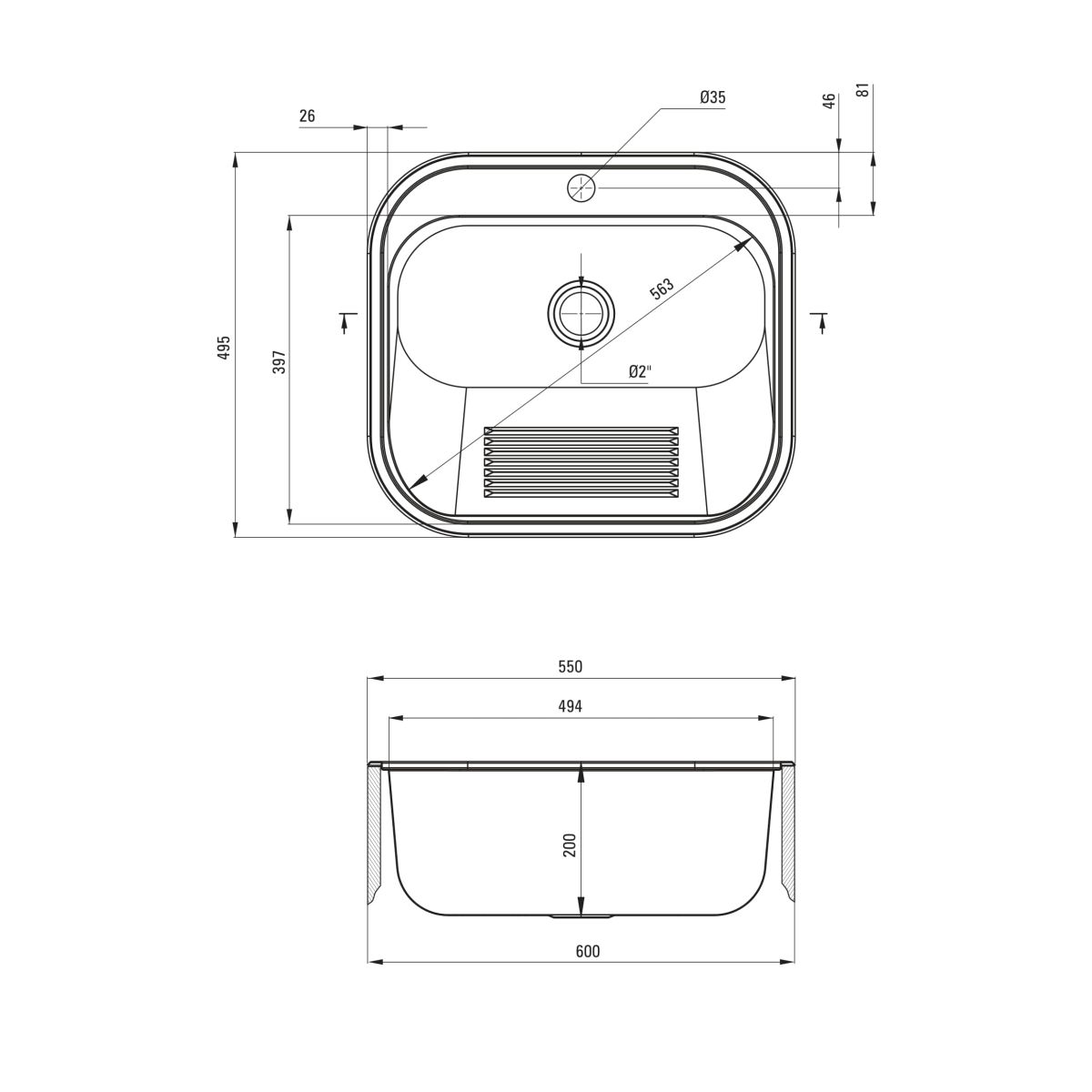 - Einbauspüle/zur Wandmontage