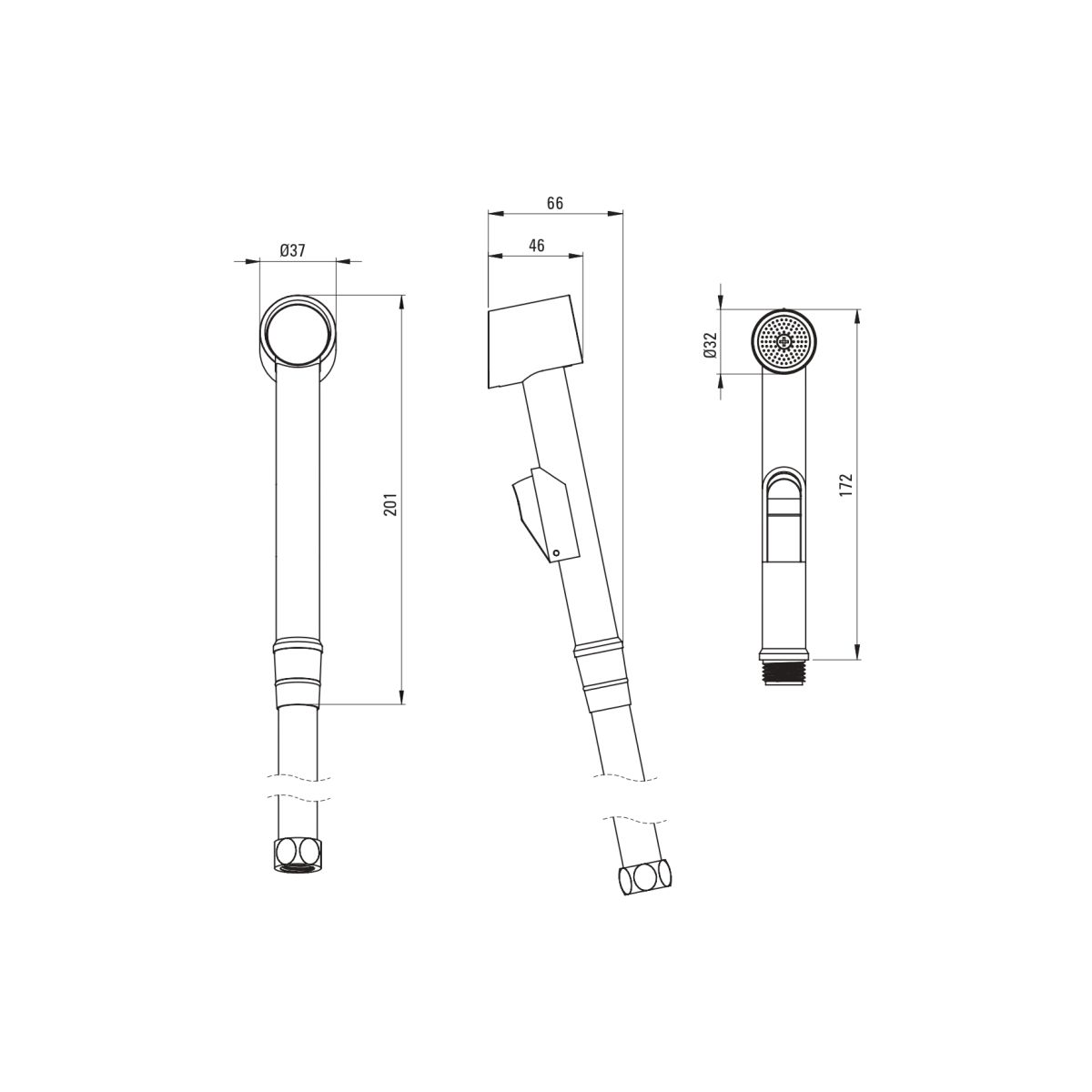 - Inbegriffen: Duschschlauch, Duschhalter, Duschbrause für das Bidet