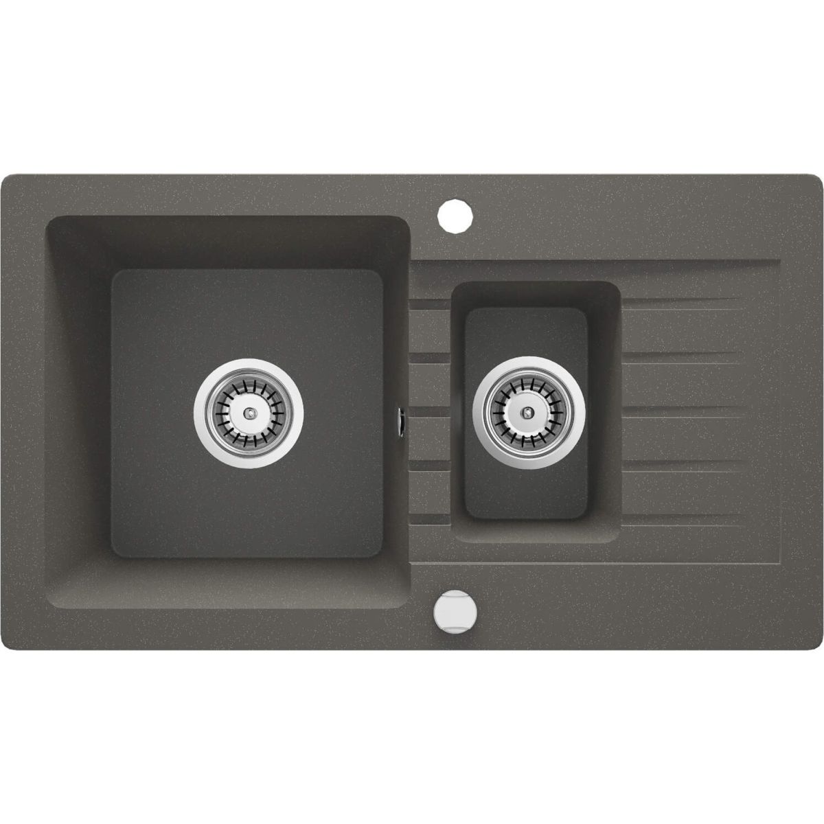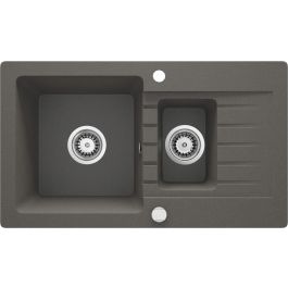 Die Granitspüle Zorba mit 1,5 Kammern, einer geräumigen und einer kleineren, rechtwinkligen Kammer mit Abtropffläche, ist ein Produkt, das sich perfekt in minimalistische oder skandinavische Kücheneinrichtungen einfügt. Der elegante Anthrazitfarbton bildet einen effektvollen Kontrast zu einer hellen Arbeitsplatte aus Stein oder Verbundwerkstoff oder fügt sich perfekt in eine schwarze Umgebung ein und sorgt für einen stilvollen, monochromen Effekt, während der metallische Glanz, der von Aluminiumpartikeln stammt, einen Hauch von Extravaganz verleiht. Die hier vorgestellte Spüle ist aus Granit gefertigt und zeichnet sich durch alle Vorteile aus, die für dieses extrem harte und widerstandsfähige Material typisch sind. Dazu gehören Beständigkeit gegen Verfärbungen, Kratzer, Temperaturschocks, Temperaturen von bis zu 250 Grad sowie Stöße. Darüber hinaus sind die Spülbecken aus dieser Kollektion wasserabweisend, was bedeutet, dass ihre Oberfläche nicht nur keine Wassermoleküle durchlässt, sondern diese auch abweist, wodurch sie viel leichter sauber zu halten sind.